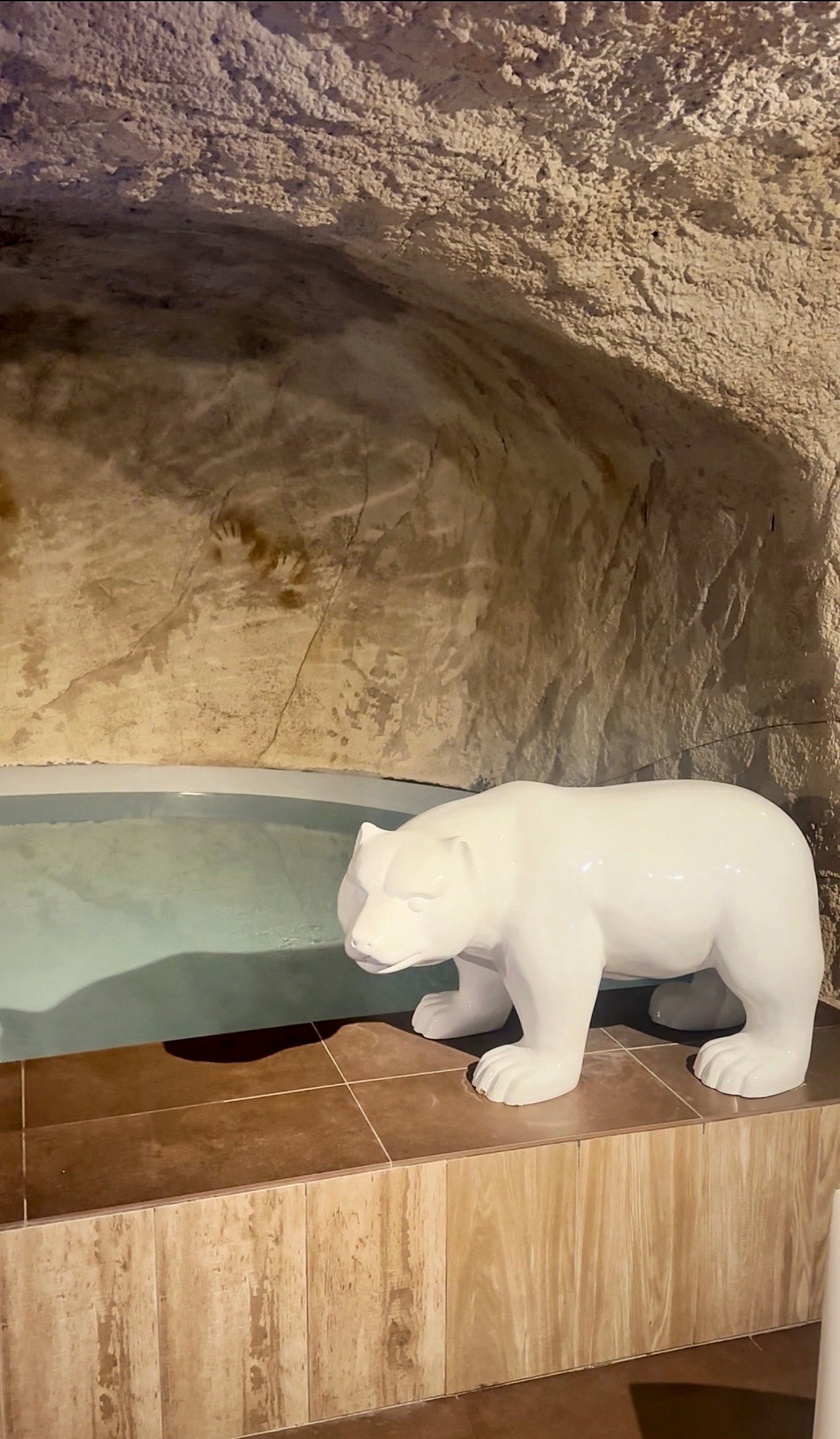 Le Bain de l'Ours invite petits et grands à entrer dans l'histoire. Niché au cœur de la roche, ce petit bassin offre une vue panoramique sur la piscine. Sur les parois, des empreintes de mains racontent le passage des visiteurs de l'Ours. Une atmosphère de grotte naturelle, authentique et mystérieuse.